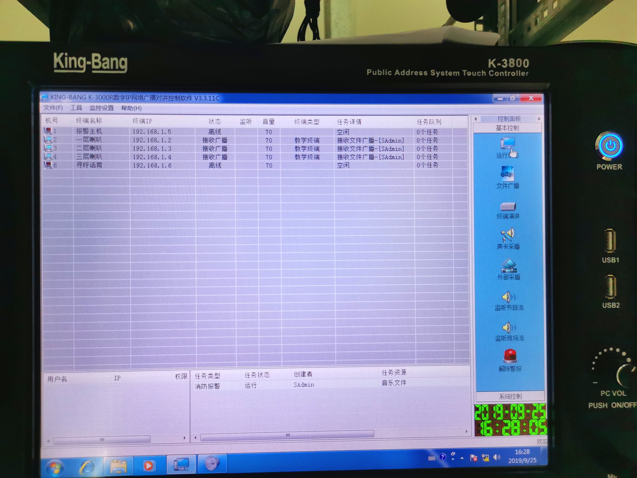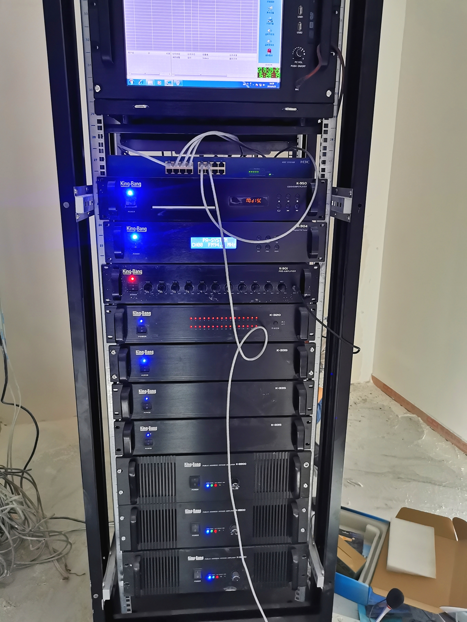 京邦(KING-BANG)廣播系統(tǒng):每層為一個(gè)單獨(dú)分區(qū),要能實(shí)現(xiàn)分區(qū)獨(dú)立控制;無(wú)需人工值守,系統(tǒng)可定時(shí)定節(jié)目全自動(dòng)播放背景音樂(lè);